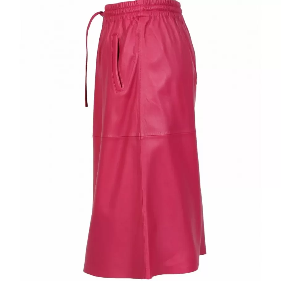 OAKWOOD Bamba Fuchsia – Jupe Mi-Longue Droite En Cuir Veritable Cheap