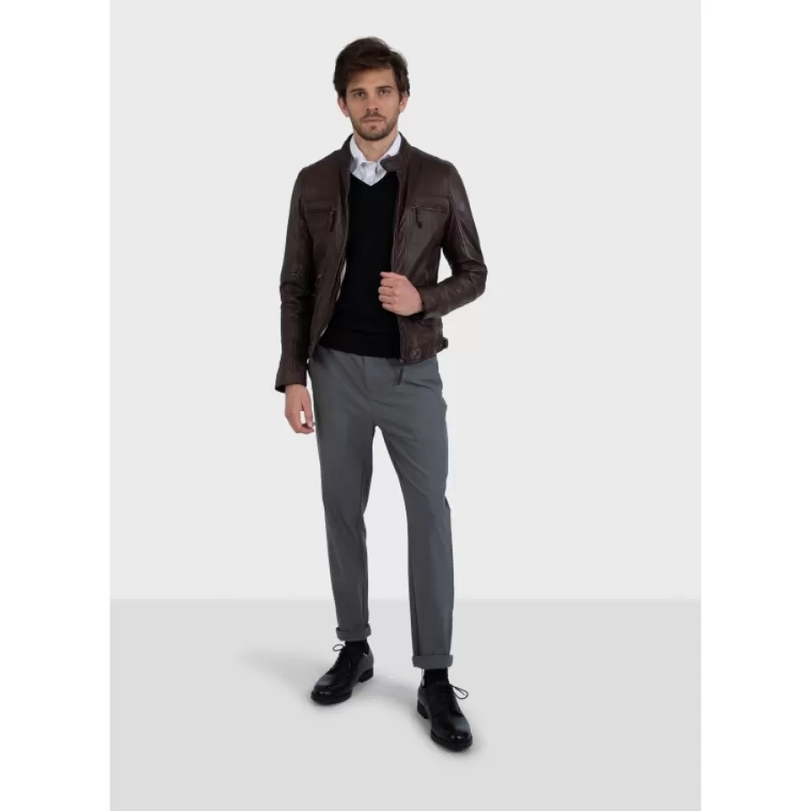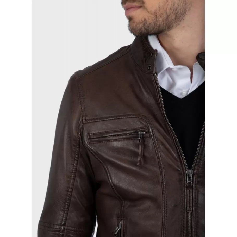Messieurs, Une Allure Stylee N’Est Pas Qu’Affaire De Femmes ! Adoptez Ce Blouson En Cuir Veritable De Mouton Lisse Et Doux Dont La Coupe Droite Et Ses Lignes Surpiquees Structurent La Silhouette. Col Haut Rond A Double Pressions, Fermeture Eclair Centrale, Poches Pectorales Zippees, Poches Laterales Zippees, Pattes De Resserrage Sur Les Cotes, Bas De Manche A Double Pressions, Poches Interieures Zippees, Doublure En Coton.