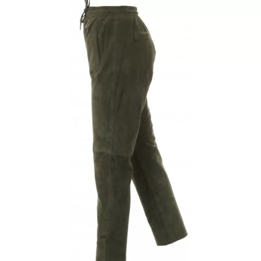 Inscrit Dans La Tendance Tres Actuelle Athleisure, Ce Jogpant En Cuir Veritable De Chevre Velours Est L’Atout A Sortir Pour Des Looks Urbains Et Branches ! Cuir Souple Et Fin, Coupe Confort, Longueur 7/8 Avec Bord Coupe Franc, Taille Elastique Avec Lien De Resserrage, Poches Passepoilees A L’Avant, Poches Decoratives A L’Arriere. Sans Doublure.