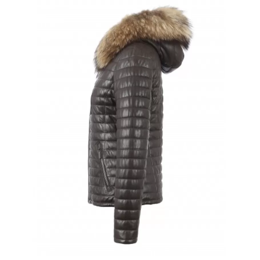 OAKWOOD Happy Marron – Doudoune En Cuir Veritable A Capuche & Fourrure Clearance