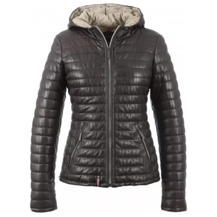 Entrez Dans La Tendance Sportswear Avec Cette Doudoune Courte A Capuche (Non-Amovible) En Cuir Veritable Lisse Et Bicolo…