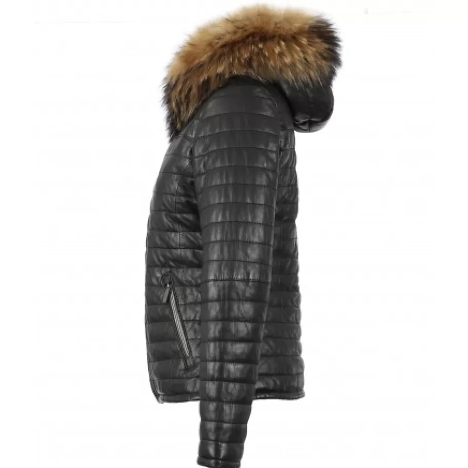 OAKWOOD Happy Noir – Doudoune En Cuir Veritable A Capuche & Fourrure Cheap