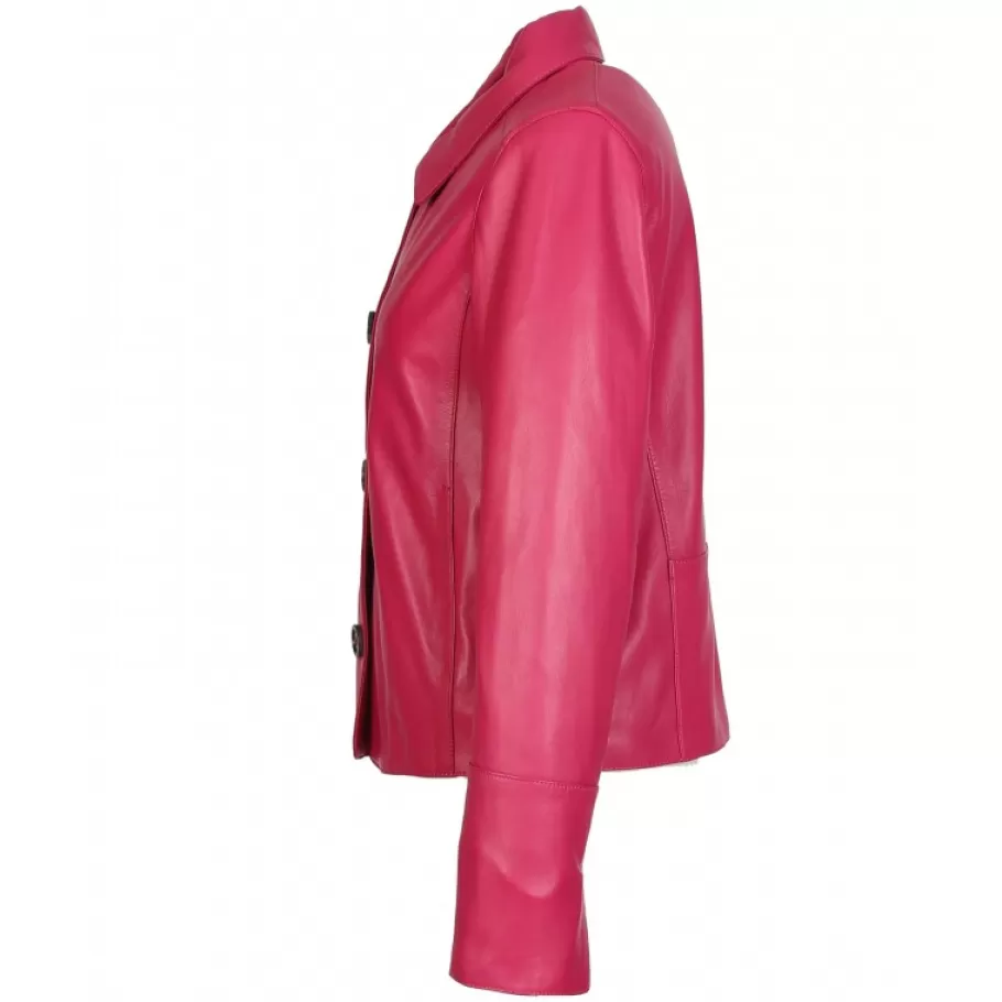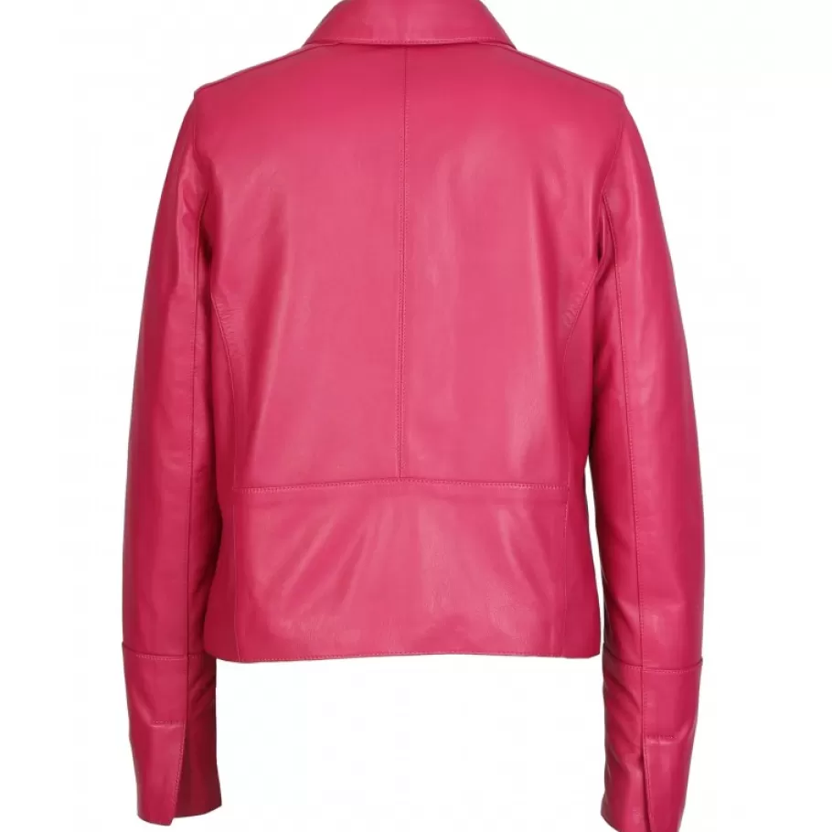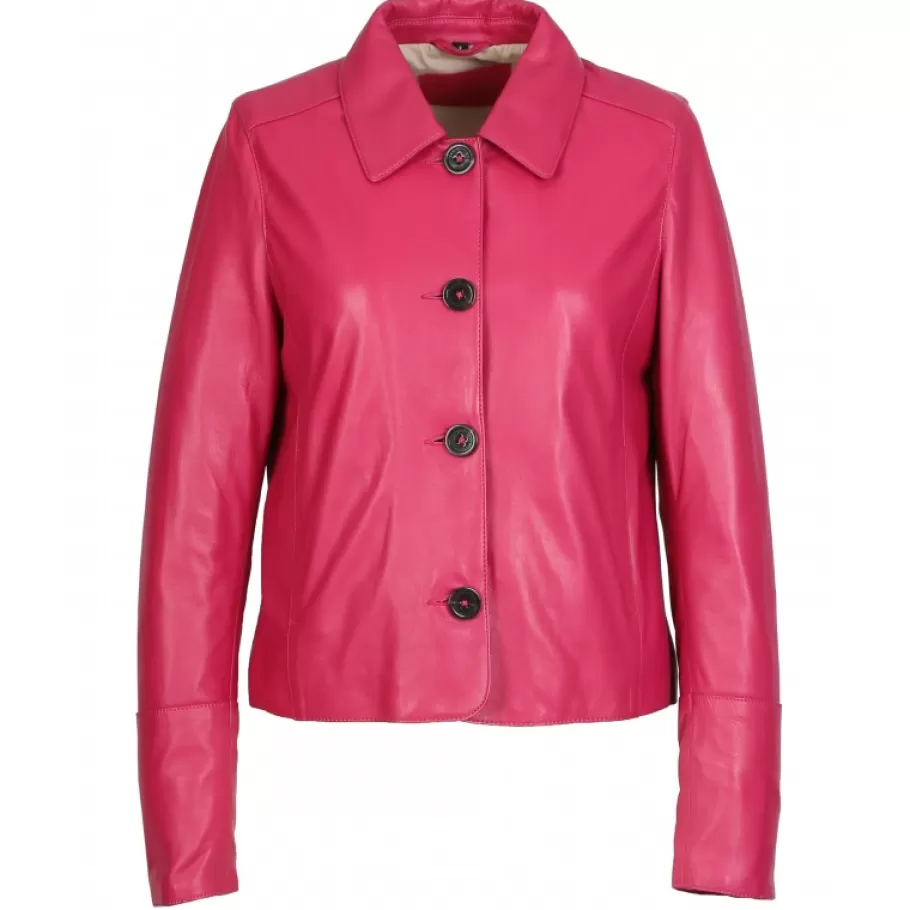 Cette Belle Veste En Cuir Veritable De Mouton Fait Se Rencontrer L’Envie De Chic Marie A L’Envie De Quelques Touches D’Originalite De Votre Tenue. Coupe Confort, Col Chemise, Fermeture Centrale A Boutons, Poches Invisibles, Fente Aux Poignets, Poche Interieure Zippee, Doublure En Coton.