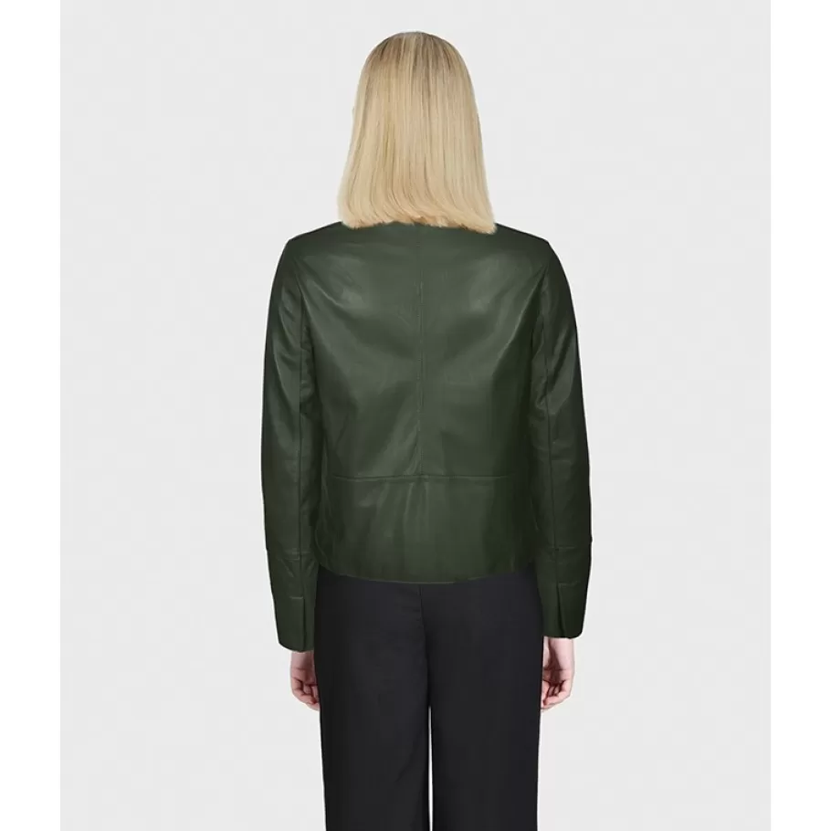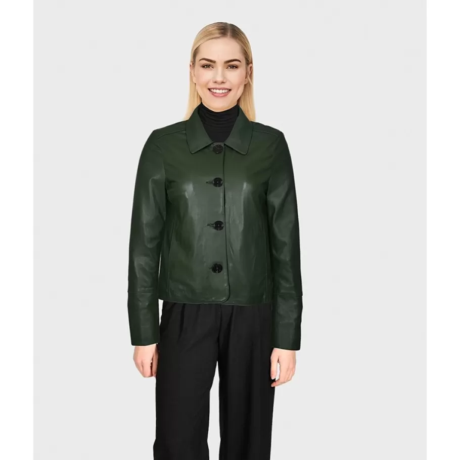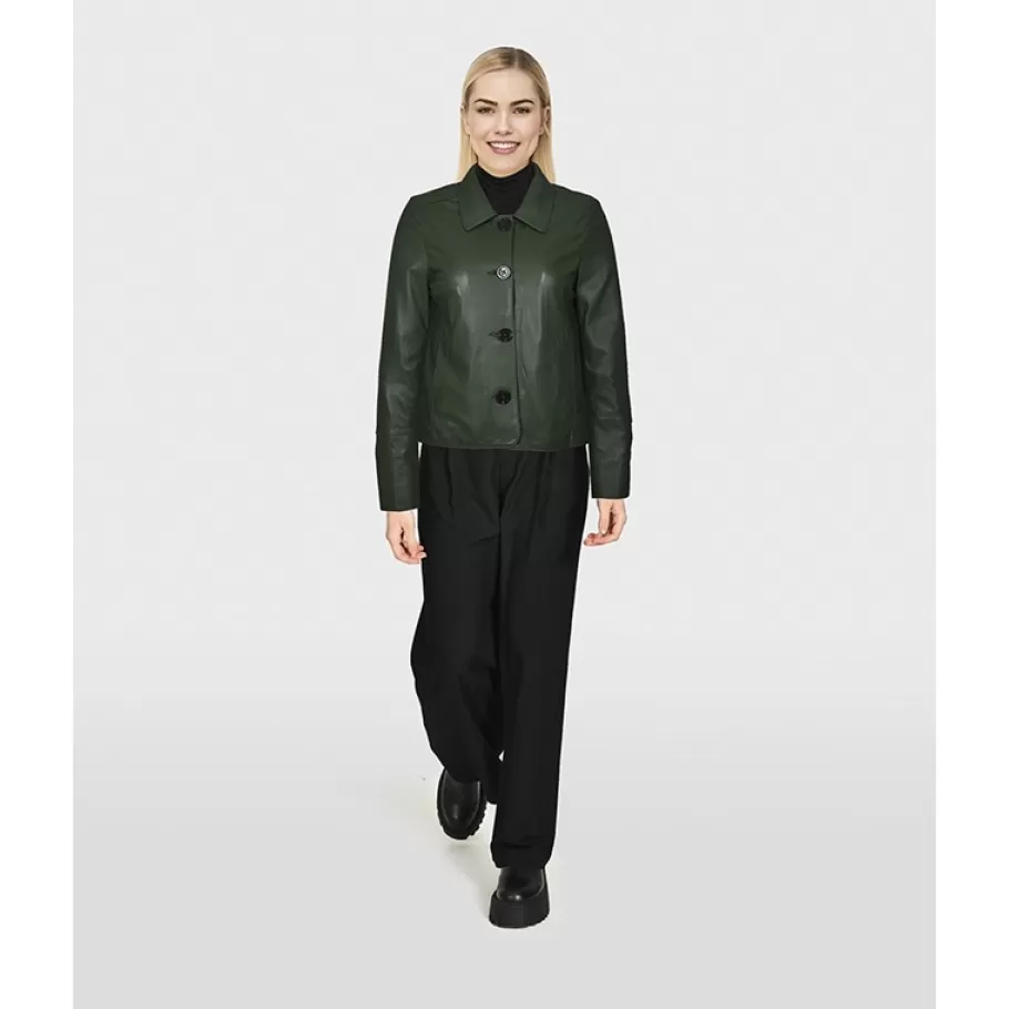 Cette Belle Veste En Cuir Veritable De Mouton Fait Se Rencontrer L’Envie De Chic Marie A L’Envie De Quelques Touches D’Originalite De Votre Tenue. Coupe Confort, Col Chemise, Fermeture Centrale A Boutons, Poches Invisibles, Fente Aux Poignets, Poche Interieure Zippee, Doublure En Coton.