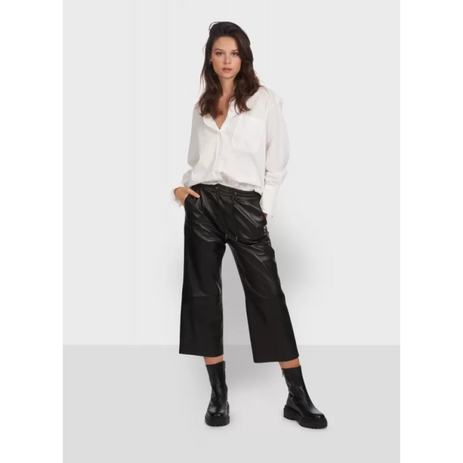 Pepite-Trendy De La Saison – On Remet Au Gout Du Jour Ce Modele Iconique Des Annees 70 Avec Ce Pantalon Court Taille Haute En Cuir Veritable De Mouton Lisse ! Coupe Confort, Ceinture Elastique Avec Lien De Resserrage, Poches Italiennes, Sans Doublure.