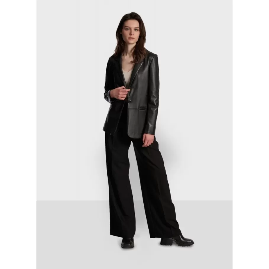 Le Blazer Est La Piece Du Moment, Celle Que L’On Marie Avec Toutes Ses Tenues, Casual Comme Chic. Quoi De Mieux Alors Pour Se Demarquer Qu’Un Blazer En Cuir Veritable ? Ce Modele En Cuir De Mouton Lisse Et Doux Avec Un Col Tailleur A Revers A Une Coupe Droite, Des Poches Passepoilees Et Une Fente D’Aisance Aux Poignets. Petit Detail Style : Sa Boutonniere Au Col ! Il Est Egalement Dote De Deux Poches Interieures Zippees Et D’Une Doublure Douce Pour Un Enfilage Facile. Incontournable, Il Est Parfait Pour Structurer Une Longue Robe Fluide Ou Pour Jouer Les Tailleurs Avec Un Pantalon Cigarette Ou Encore Donner Du Style A Un Jeans !