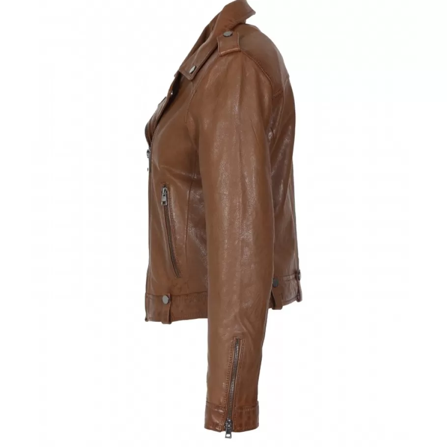 OAKWOOD Princess 6 Cognac – Blouson Esprit Biker En Cuir Veritable Best