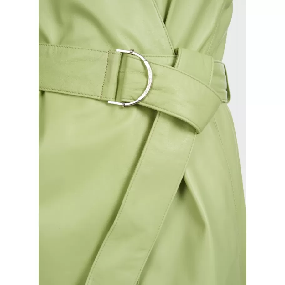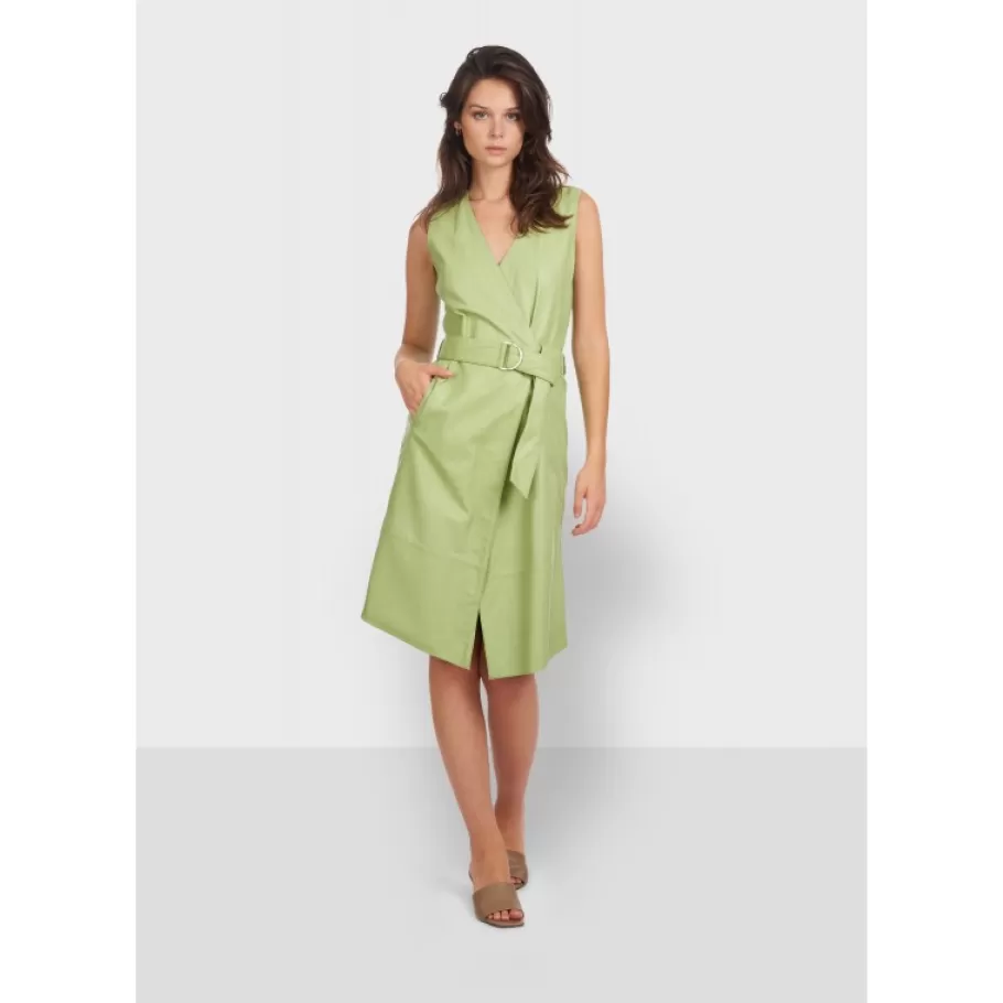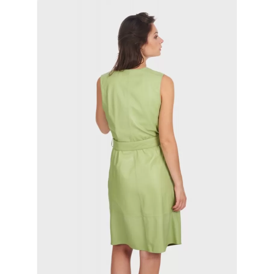 Cette Robe Portefeuille En Cuir Veritable De Mouton Fait Sensation : Son Drape Et Sa Douceur Telle Une Seconde Peau Sont Addictifs Et On Ne S’En Lasse Pas ! Coupe Slim, Col En V Croise, Fermeture A Pressions, Ceinture A Boucle Amovible, Poches Invisibles, Sans Doublure.