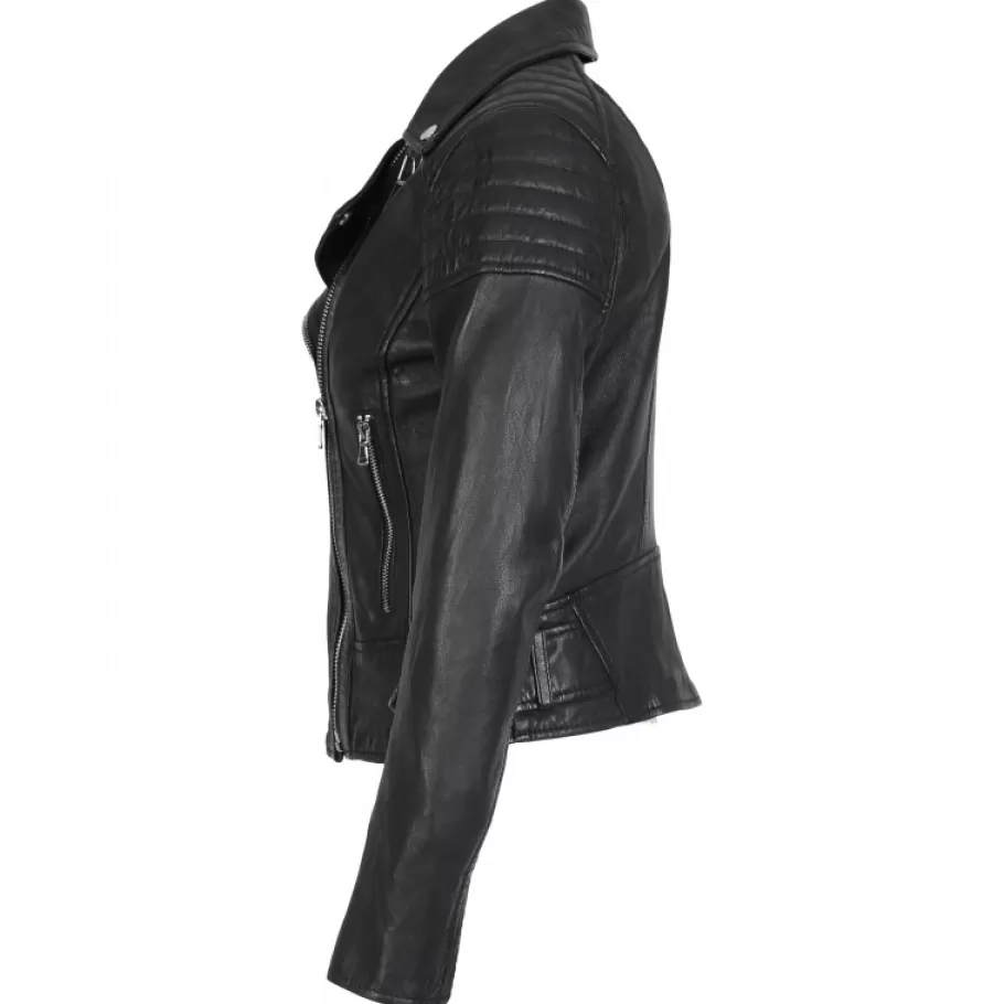 On Assume Le Look Motard Pour Le Contraster Avec Une Tenue Feminine Et Se Creer Un Style Totalement Dans L’Air Du Temps ! Et On N’Hesite Pas A Le Marier Avec Des Imprimes Fleuris, Des Robes Chemises Ou Aeriennes ! Cuir Veritable De Mouton Effet Lave, Coupe Slim, Fermeture Eclair Asymetrique, Ceinture De Resserrage Au Col, Empiecement Aux Epaules, Pressions Decoratives Au Col, Poches En Biais Zippees, Patte De Resserrage Sur Les Cotes, Bas De Manche Zippe, Poche Interieure Zippee, Doublure En Coton Melange.