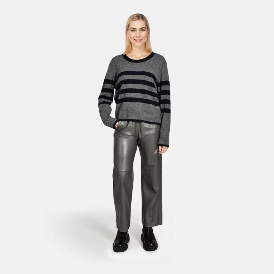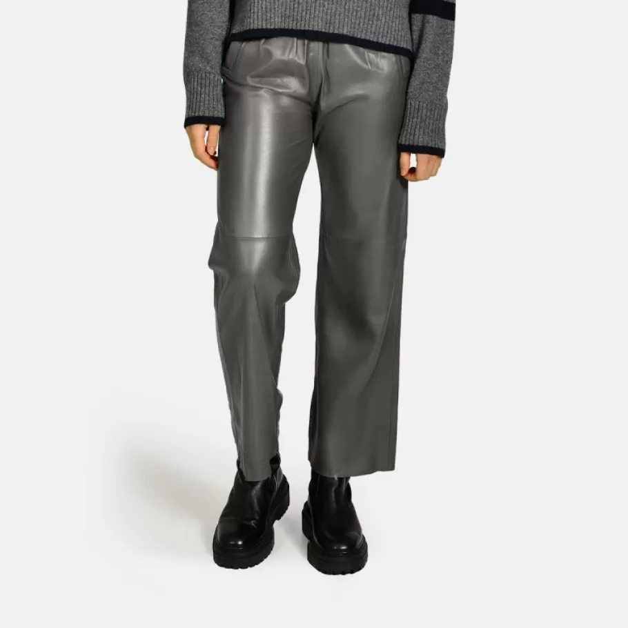 Pantalon LargeCuir Veritable De MoutonCoupe ConfortTaille Haute Avec ElastiquePoches InvisiblesBords Coupe FrancSans Do…
