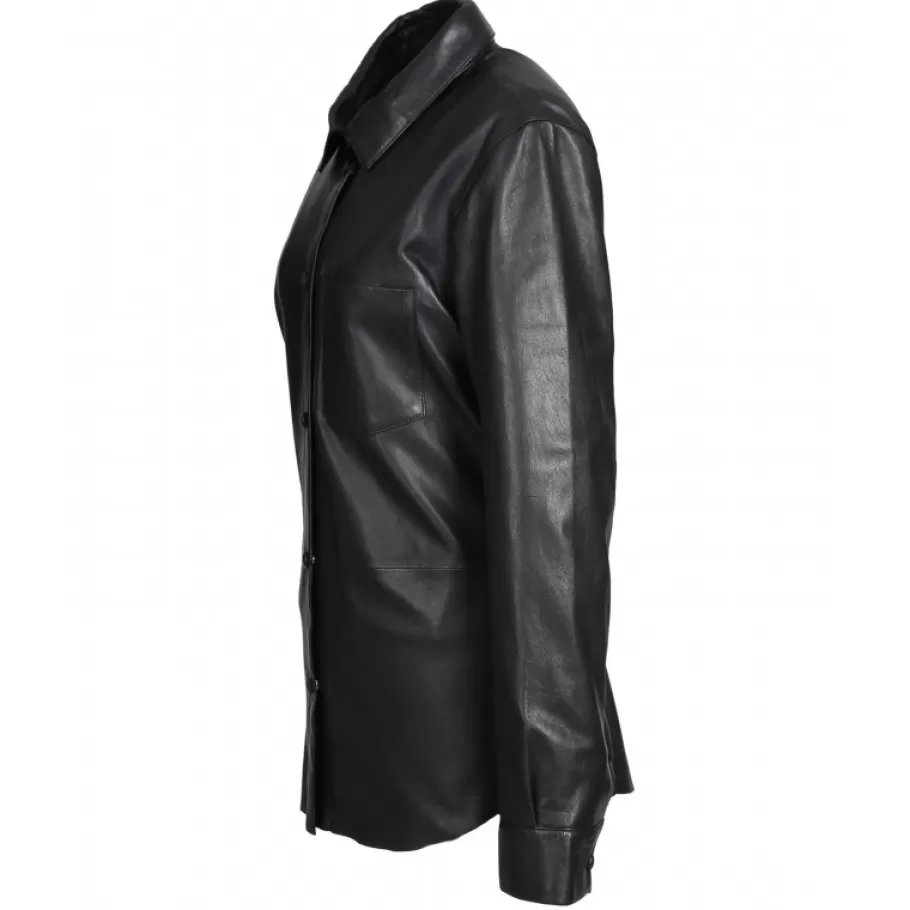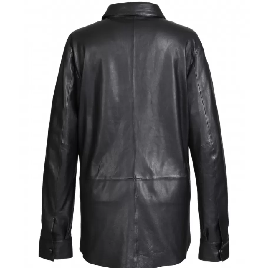 OAKWOOD Valentina Noir – Chemise En Cuir Veritable Poche Plaquee Discount